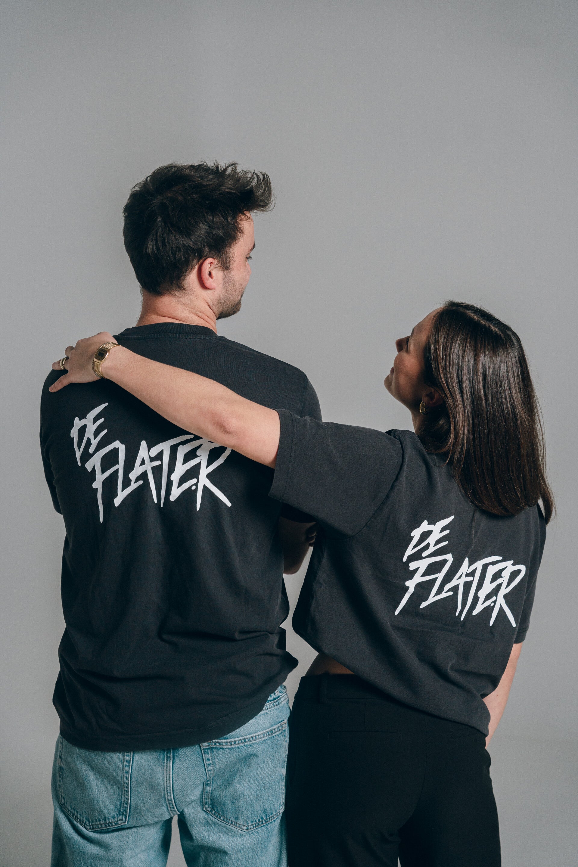 Het iconische Flater-logo bestaat bijna 50 jaar. We besloten merchandise uit te brengen om dit tijdloze logo te vieren. Ons gamma bestaat uit een T-shirt (kleur: washed black), twee longsleeves (kleuren: navy blue en soft orange), een pull zonder kap (kleur: washed black) en petjes (kleur: navy blue).